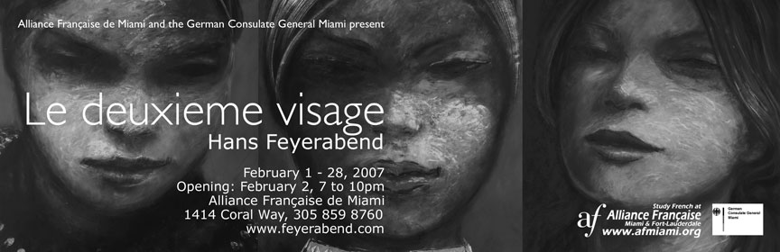 Larger-than-life female portrait “head shots” command your attention in this show through the allure of mystery, confidence, vanity and countless other degrees of emotion which are so skillfully layered in the canvas. The personality below the surface, “the second face” - or “le deuxieme visage”, reveals itself through Feyerabend’s brush and vision; beckoning you to take a second look.