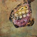 All sea life panels are acrylic modeling paste on primed wood, the top layers consist of translucent layers of oil paint.