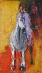| Blue Rider, 56" x 28", mixed media on canvas • Carousel, ø44", mixed media on board • El Toro, 36" x 58", mixed media on canvas • Girl, Turquoise, 36" x 52", mixed media on canvas • Horse, 9" x 7", oil on canvas board • 2 Cats, 53" x 29", mixed media on canvas • Portrait, 34" x 12", mixed media on board • Procession II, 12" x 23", mixed media on board |